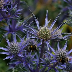 Paarsblauwe stengels en kransen, zilver geaderd blad dat langer mooi blijft dan bij de meeste kruisdistels.