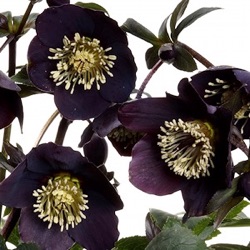 Helleborus niger, Helleborus orientalis en hybride cultivars op dit moment voorradig op de kwekerij.